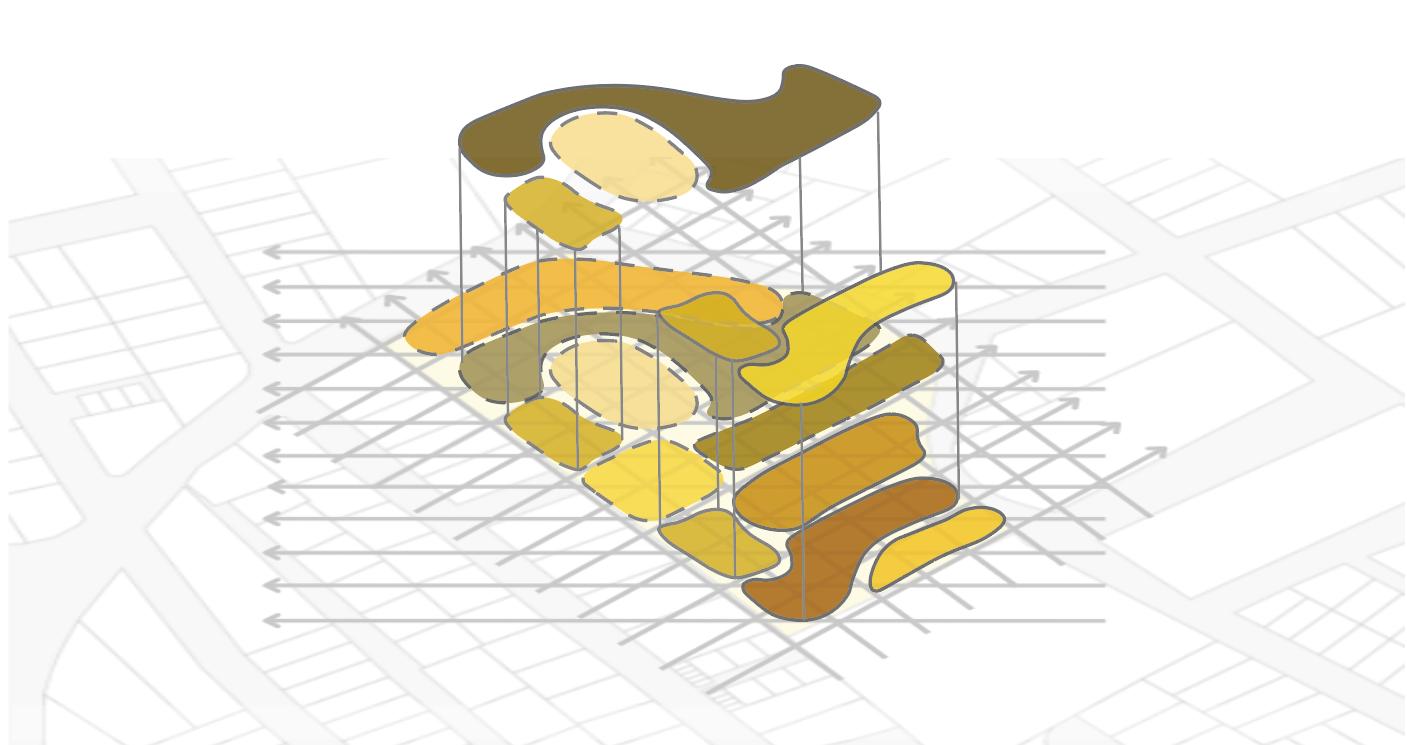 Uso de lotes baldíos centralizados entre las zonas de uso de suelo residencial Según PUGS 2033: Se debe cumplir el metraje necesario, en los casos que el nivel de consolidación es alto y no existe suelo vacante para su reserva , se procura la proyección de edificios multifuncionales que incluya un conjunto de usos y servicios de escala barrial que puedan abastecer a la mayor cantidad de población posible.