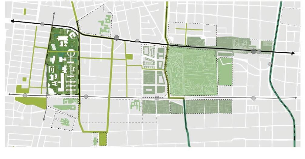 Design is based on three fundamental actions. First, transform the character of the railway, dismantling it and creating new green heart instead. Second, release the center of the city of the vehicles to give priority to the pedestrian, generating new relationships of proximity and exchange for residents. Third, use all the parking spaces at the center to build new housing and mixed-used areas that will attract new inhabitants. To generate this vibrant city, we complement these actions with the reinterpretation of ongoing projects for the city center, such as Junction and Place des Arts. In addition, we give a new location for the Arena, build a new public library, and an expand the university campus.