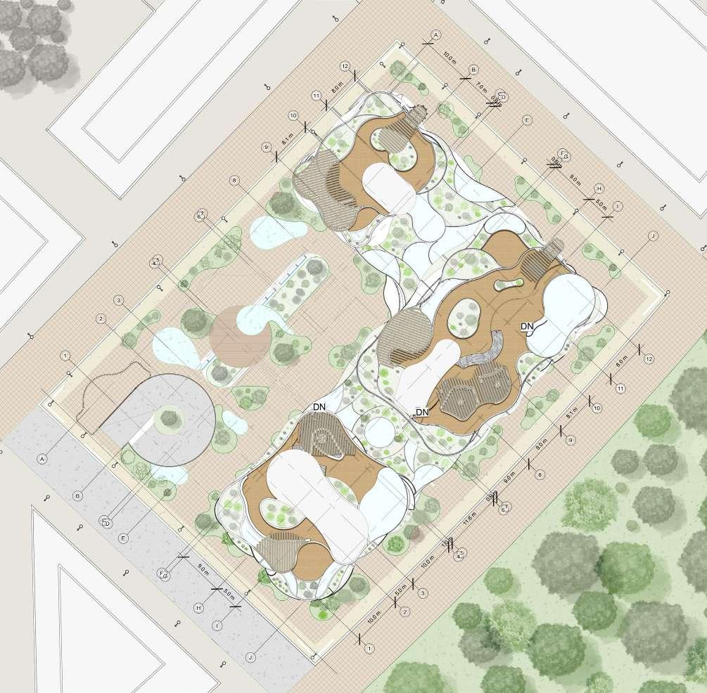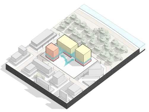 Our proposed master plan idea for the SUBURY 2050 Ideas Competition takes place in Sudbury, Canada. It is primarily about a revitalization of the territory that seeks to develop and create a new social space for economic, political and cultural exchanges closer to suburban development, combining affordability and diversity while prioritizing pedestrians and vegetation over cars. The design re-launches the existing space into the future and creates an innovative, open and democratic meeting place for all Sudbury residents.
