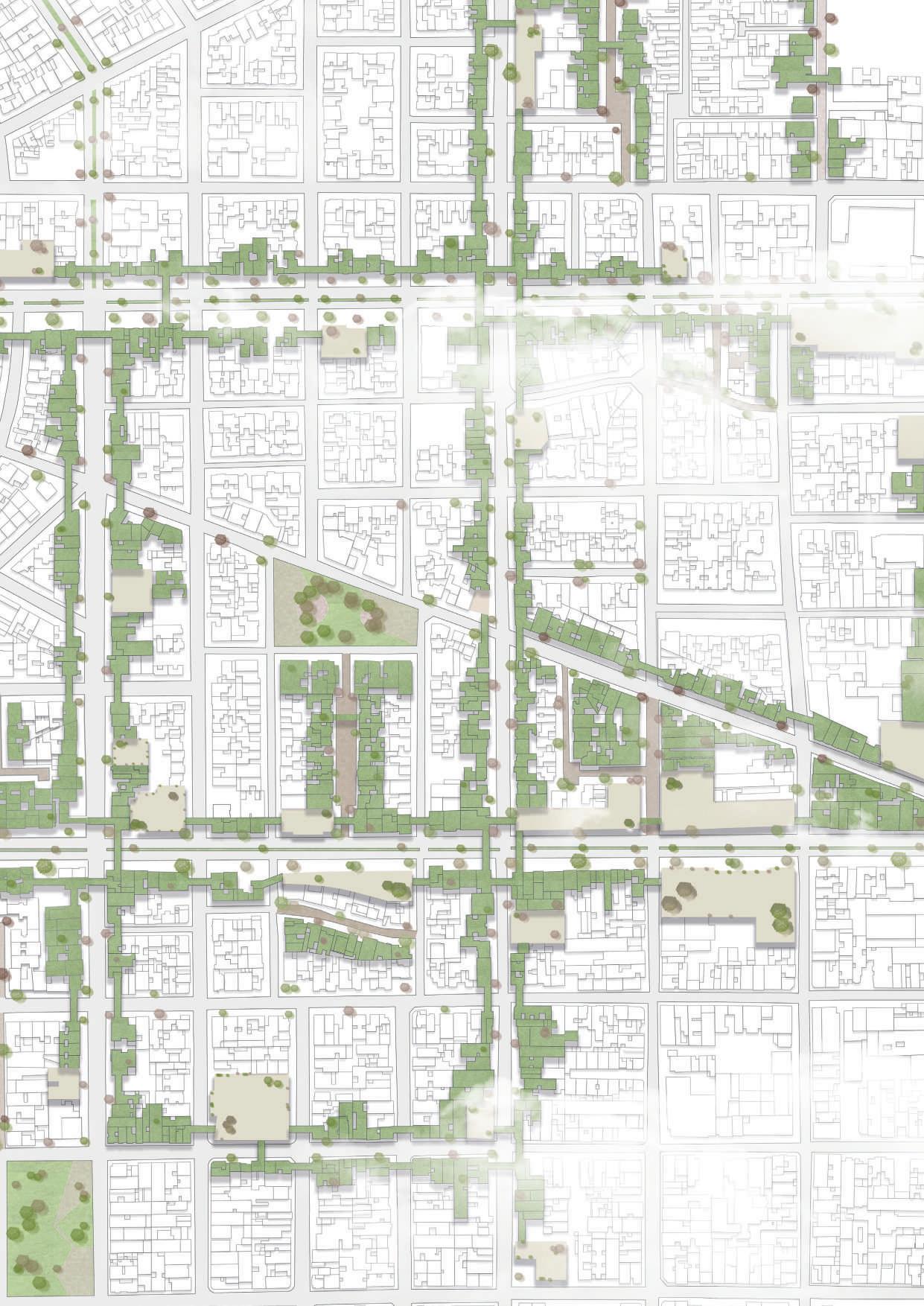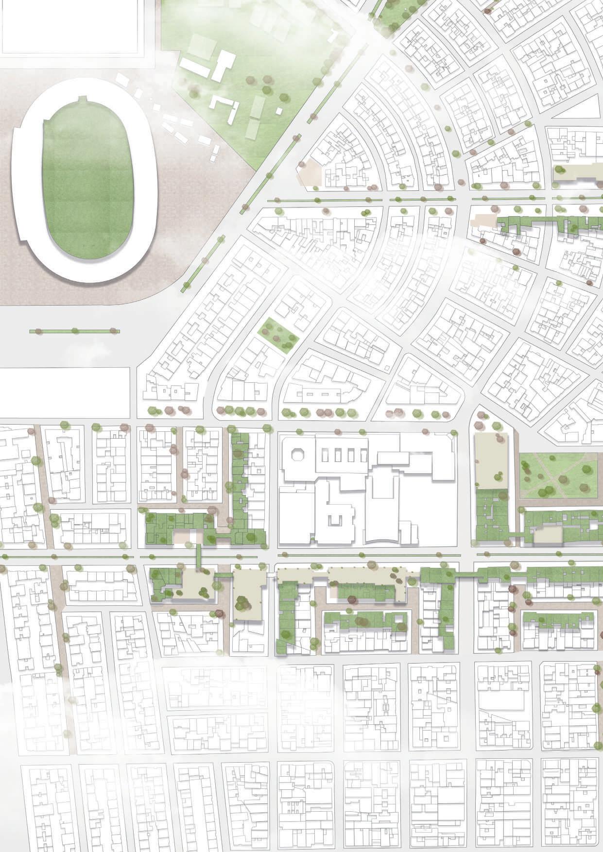 Based on the historical character of the Galerías neighborhood, Bogotá, Green Gallery seeks to prioritize the cultural and economic aspects of the sector, through strategic interventions that transform the space into a cultural area, improving the quality of life of the inhabitants and generating pleasant experiences for the residents. The design reinterprets the place, preserving its heritage identity and understanding the transition of the different uses, from the residential character to a productive one.