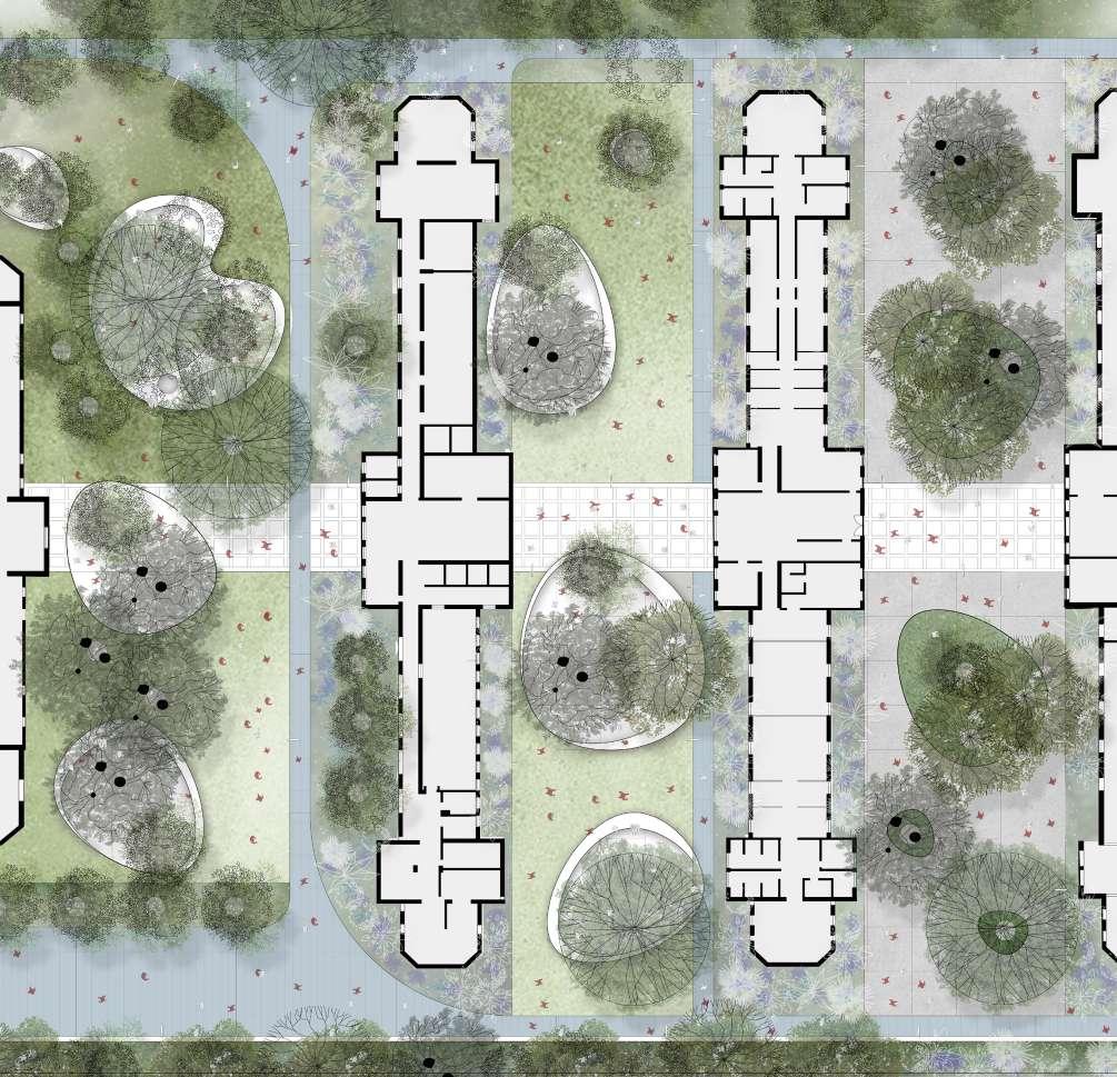 Garden between pavilions