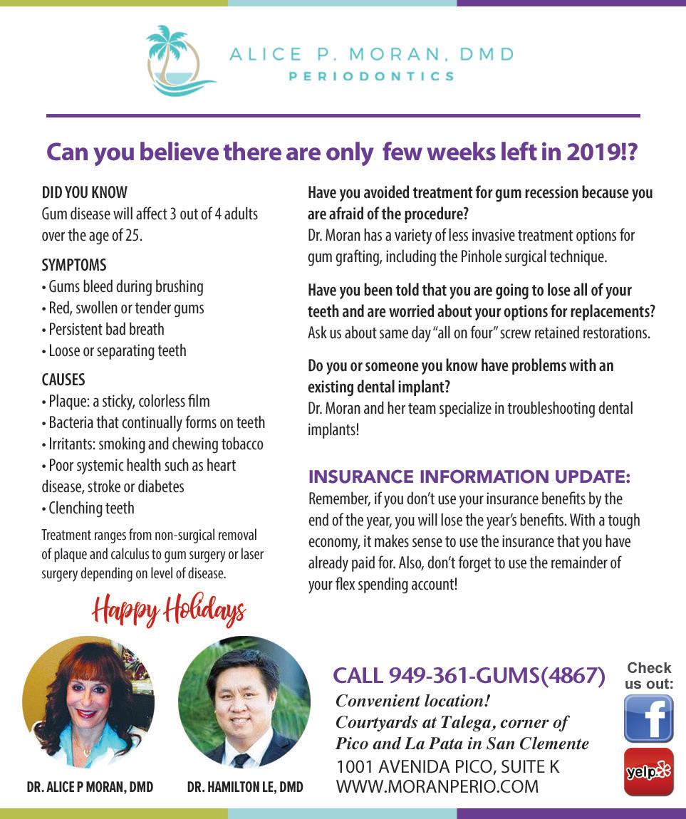 Dr. Alice P. Moran, DMD 1001 Avenida Pico, Ste. K, 949.361.4867 (GUMS), moranperio.com