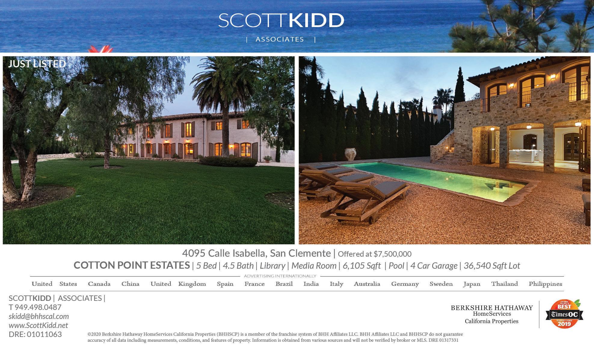 Scott Kidd, Berkshire Hathaway Home Services 949.498.0487, skidd@bhhscal.com