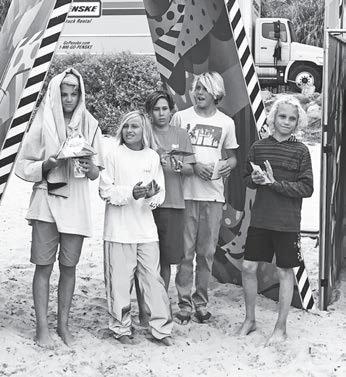 vision; and when it came to the groms, the 14-and-unders were more frothed out than anyone. Psyching each other up before the final on Sunday, Zach Perry, Rex Hennings, Callan Emery, Jacob Crouse and Josh Johnson hit the water like rockets. With a clean, threefoot south swell wrapping in off the point, the boys had a ball. Riding heavy, old, vintage boards, it was a great experience for all of them. Today’s surfboards have come a long way over the last 30-plus years, but to sample what it was like “back in the day,” it’s going to do wonders for their styles, approaches and appreciation for where surfing’s been and where it’s going. In the end, it was Perry edging out the field to take a well-deserved win. SC