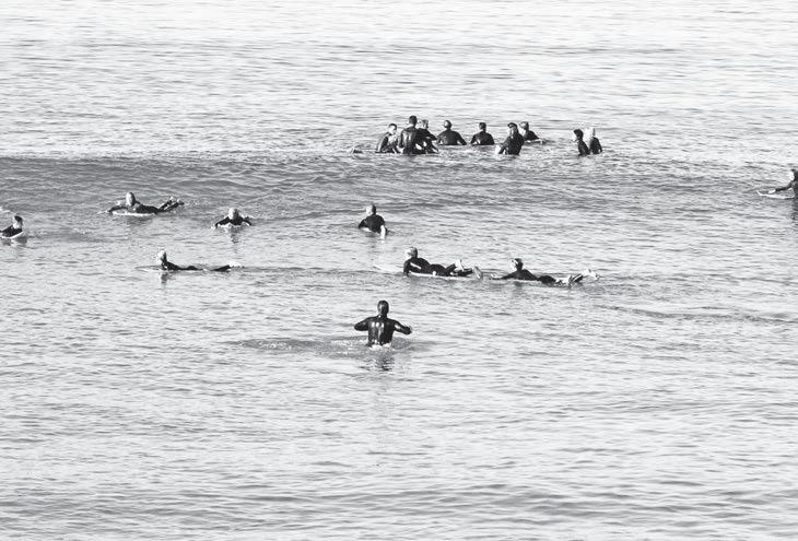 This is pretty much the cardinal rule in surfing. More arguments and fights start in the water when somebody gets “burned” than for any other reason. If somebody is already up and riding on a wave, do not—I repeat, do not—take off in front of them. It’s rude, it’s disrespectful, and if you’re a kook and blow the take-off, somebody can get seriously hurt. All you have to do is look over your shoulder when you’re paddling for a wave. If someone is on their