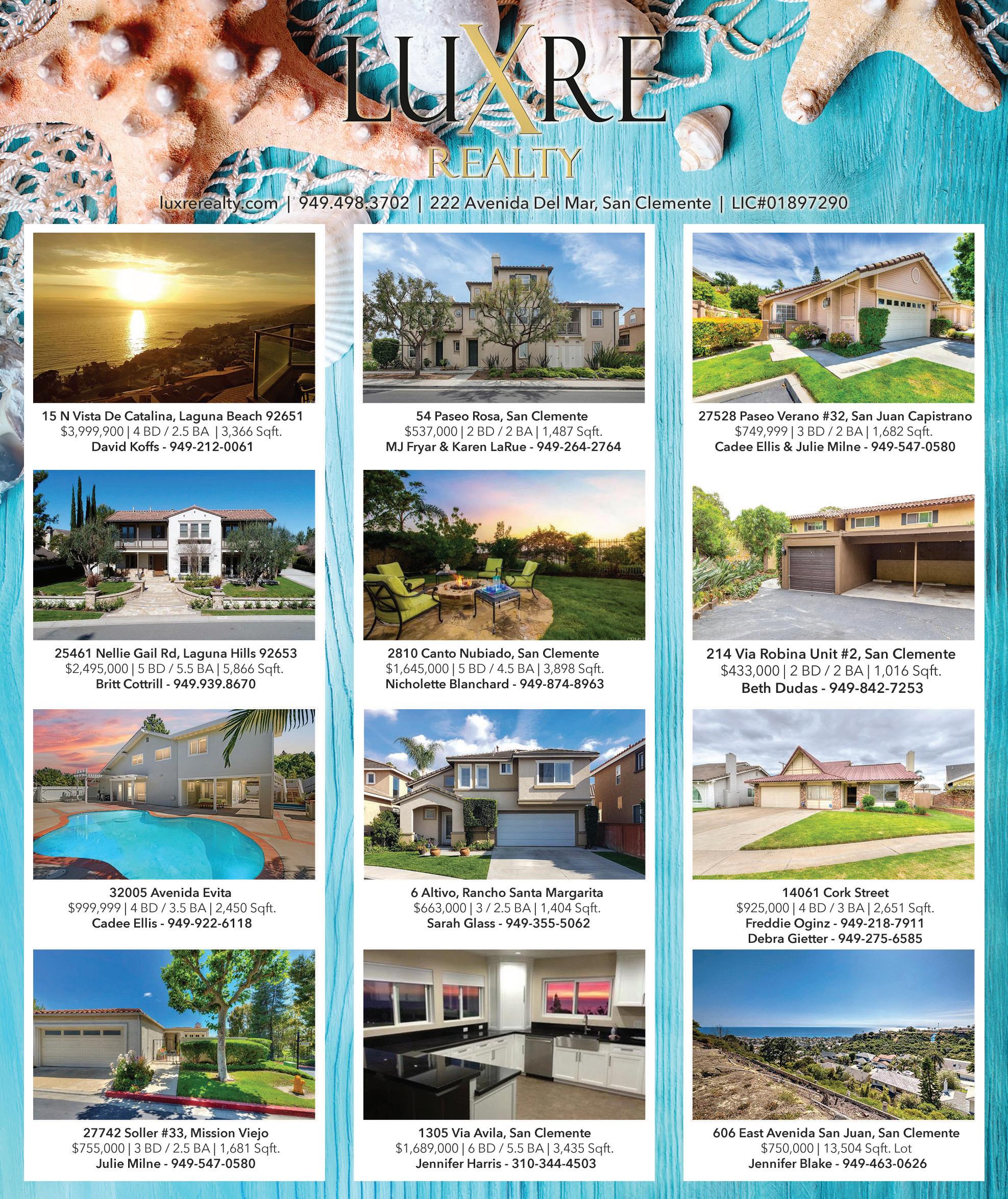 “Sandy & Rich” RE/MAX Coastal Homes 949.293.3236, www.sandyandrich.com