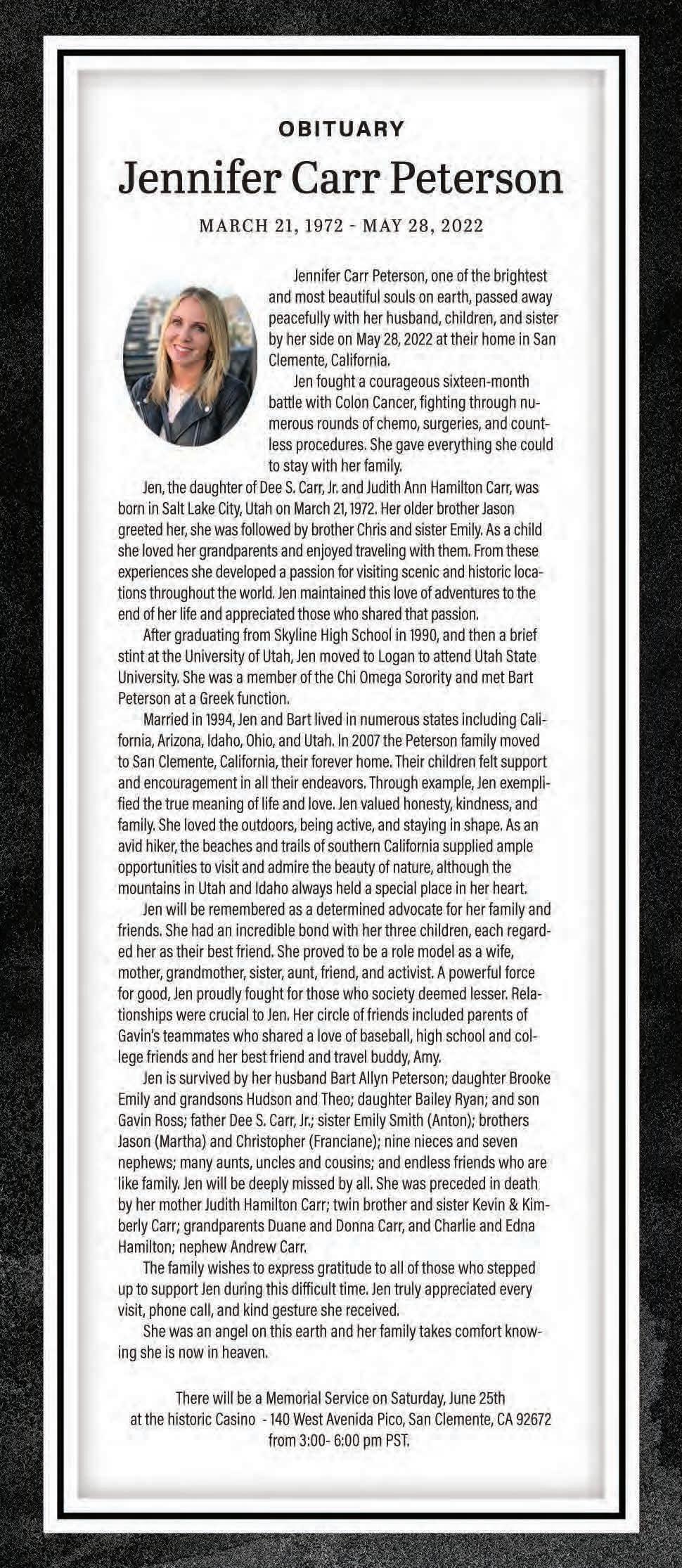 A memorial is planned for 2pm, June 11th at the Arons family home at 204 Avenida Salvador.