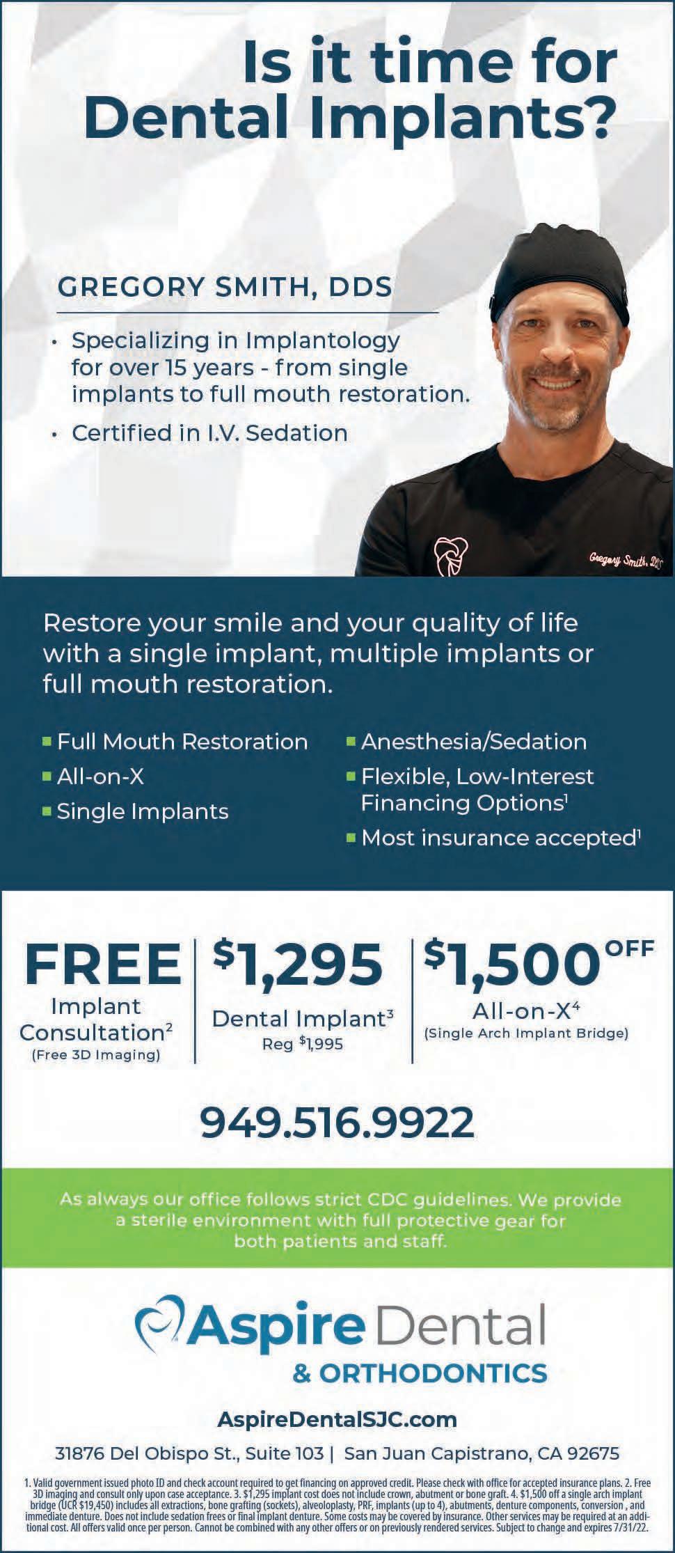 Johnson, D.D.S. 647 Camino de los Mares, Ste. 209, San Clemente, 949.493.9311, drericjohnson.com
