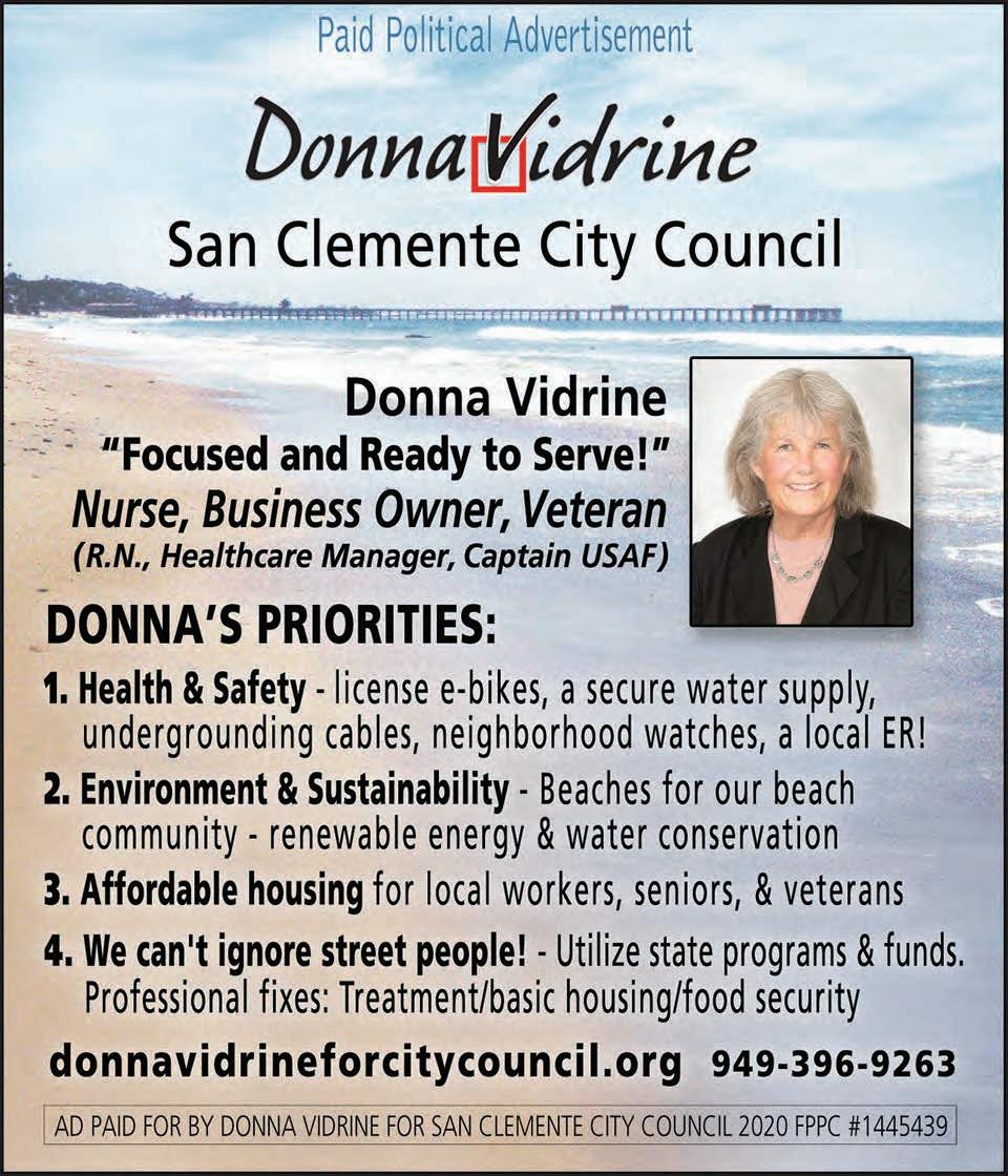 The candidates were also asked to weigh in with their vision for travel and tourism in San Clemente, and to provide their opinion on what percentage, if any, of the city’s revenue collected from the Transient Occupancy Tax should be allocated to promoting the town’s tourism industry.