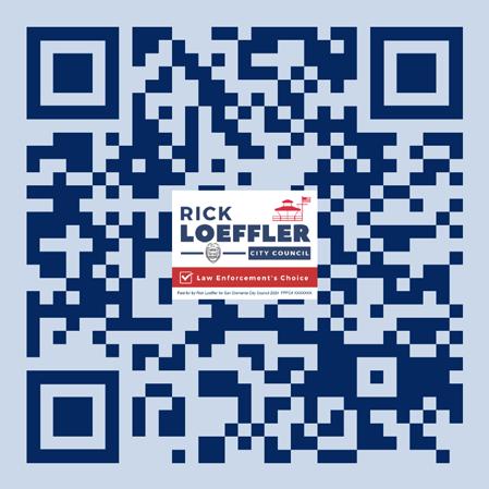 Rick Loeffler, a retired LAPD member with 36 years of service, has been active in San Clemente for seven years. As chair of the Public Safety Committee, he improved safety and revived a rejected security contract. Loeffler also leads the Friends of San Clemente Beaches and Arts Foundation, which has contributed over a million dollars to local camps.