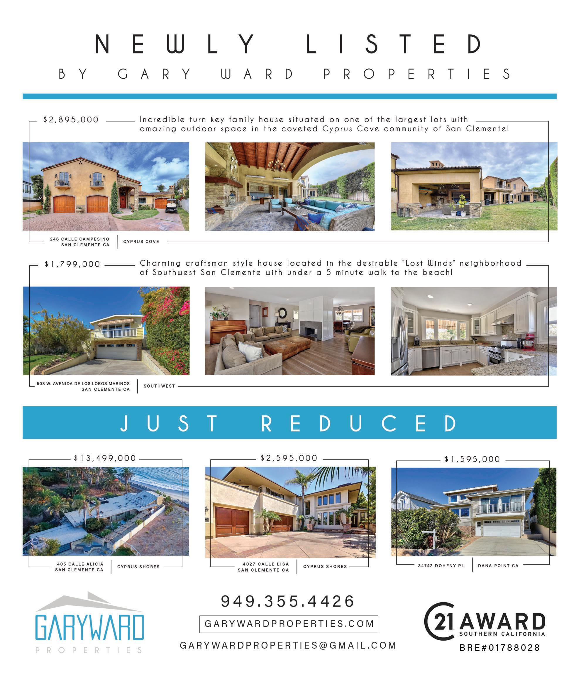 “Sandy & Rich” RE/MAX Coastal Homes 949.293.3236, www.sandyandrich.com Scott Kidd, Berkshire Hathaway Home Services 949.498.0487, skidd@bhhscal.com