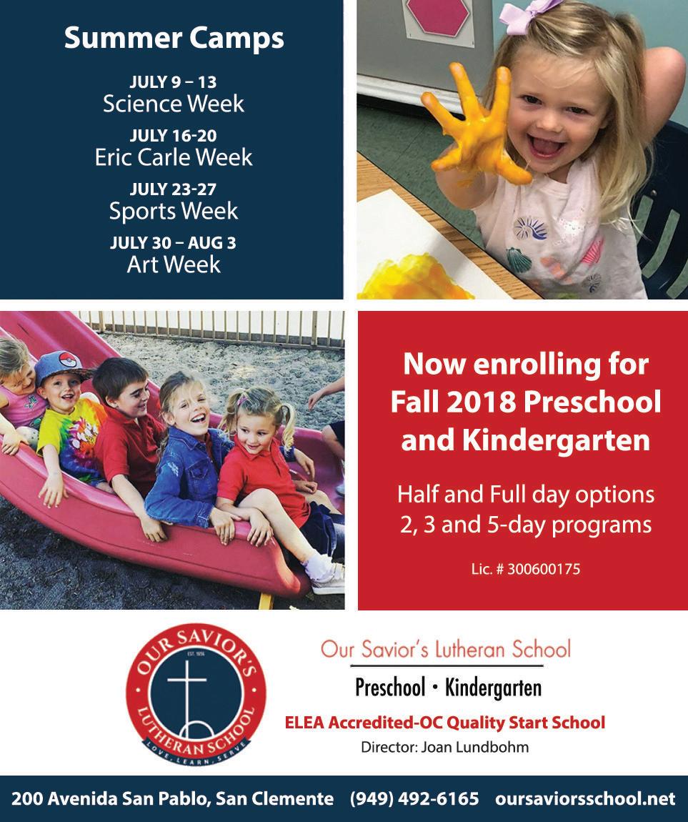 WHAT’S NEXT: Thirteen cities under contract with OCSD for police services agreed to pool funds in 2017 to do a study of the costs for those services, but that study will likely not be finished until after the 201819 budget is passed by City Council. The final meeting regarding the city’s budget will take place on Tuesday, June 12. To see the budget in its entirety, visit www. sanclementetimes.com. —EH
