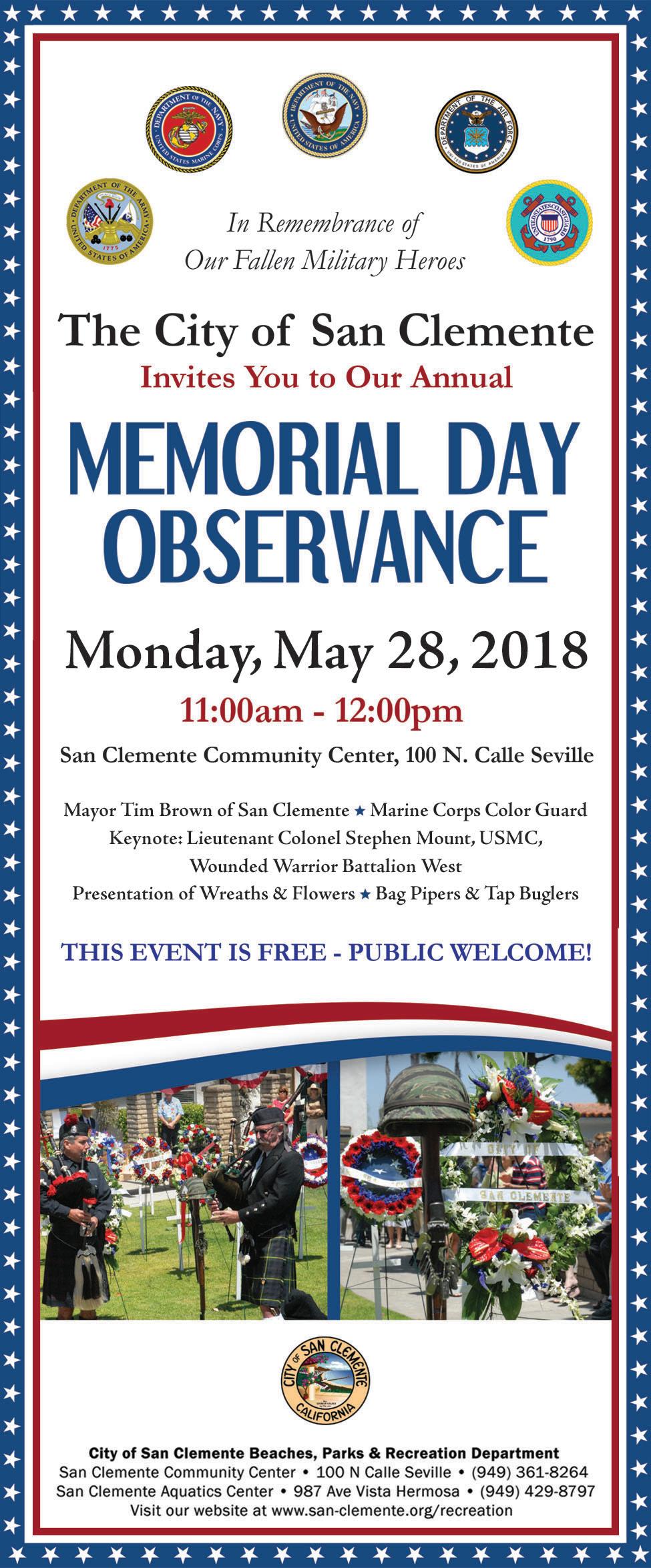 Five things San Clemente should know this week Memorial Day Celebrations Scheduled for May 28