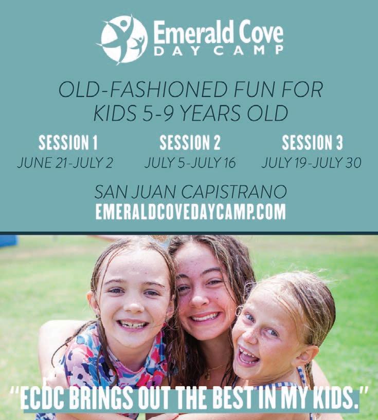 Emerald Cove Day Camp--where kids grow in all the right ways! Through the old-fashioned fun and Christian nurturing of the most creative and caring staff around, campers experience two weeks that last a lifetime. Located at Del Obispo Elementary School, 25591 Camino Del Avion, San Juan Capistrano 92675. Two-week sessions, Monday-Friday. emeraldcovedaycamp. com, 949.361.3077