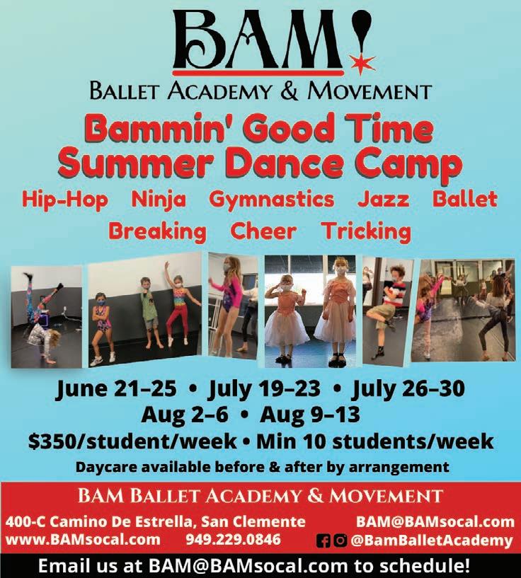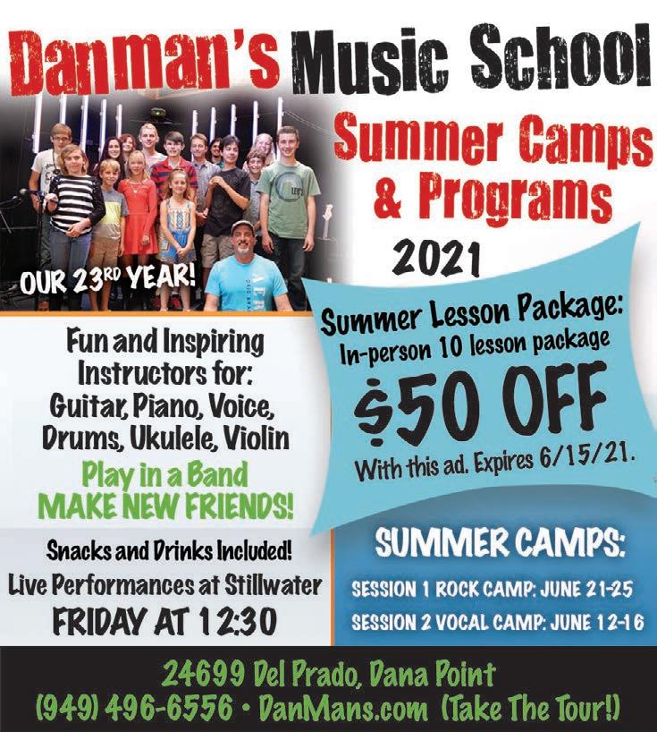 Our guide features a mix of half-day, full-day and some overnight activities in Dana Point, San Clemente, San Juan Capistrano and surrounding cities. In this year’s guide, we o er you options for music lessons and camps, opportunities and services for low-income families, and equestrian programs for kids in the area.