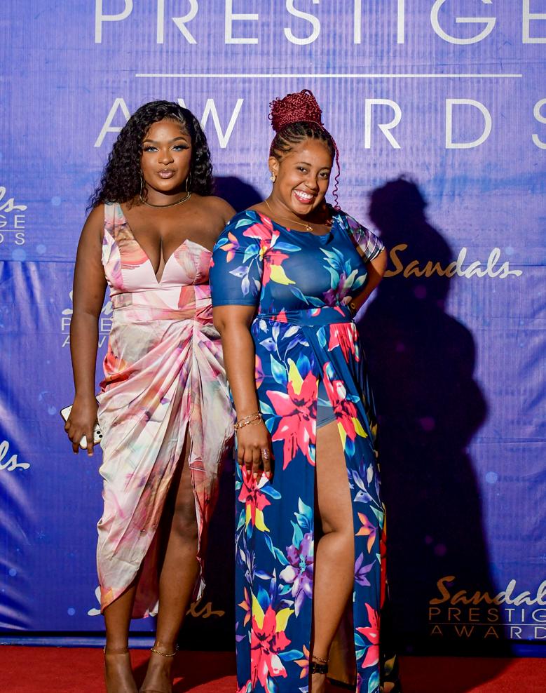 Two of Sandals Ochi’s radiant ladies from the Front Office Luckie Dyer & Trisan Elliott strike a pose at the 2023 Annual Prestige Awards Ceremony, exuding confidence and style.