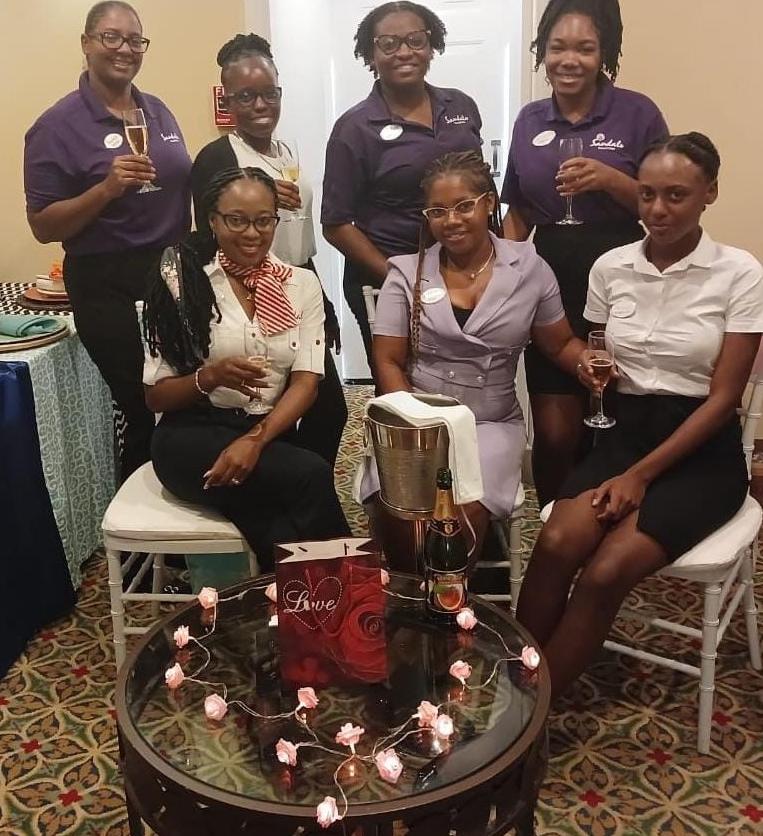 Radiating charm and elegance, the Front Office ladies at Sandals Dunn’s River delightfully blow a kiss during our annual Prestige Awards ceremony, adding a touch of allure to the evening’s festivities.