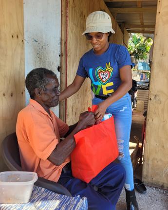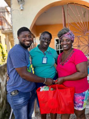 2. Donnalee and Keish bask in the moment, taking time to appreciate the thoughtfulness of each staff care package as they help distribute them in the wake of Hurricane Melissa’s passage across Jamaica. Their smiles reflect the gratitude and joy these small acts of care bring to the team.