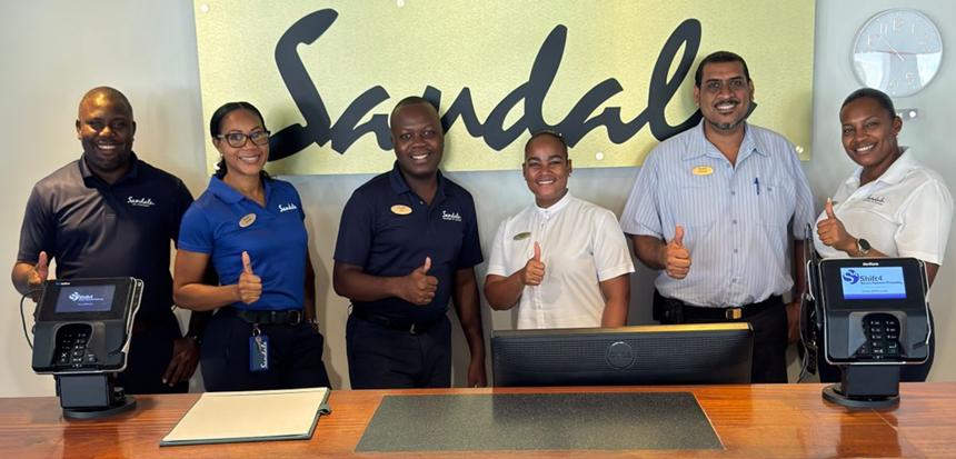 1. Thumbs up from our Rooms Division team at Sandals Grande St. Lucian Spa & Beach Resort. From left: Clifford, Anna, Zidan, Raissa, Emerson, and Immer.