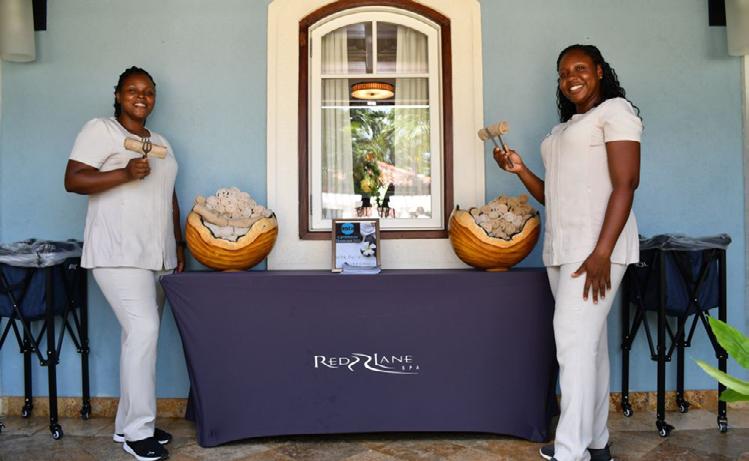 1. Sandals Antigua recently celebrated its successful revenue fair “Festival of Colors” featuring all of the resort’s revenue areas in one space for guest to interact, learn about products and services and snag amazing sales and discounts. Here we see resort shop team member Ann-Marie proudly showcasing resort shop offerings.