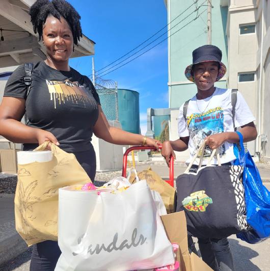 2. Cart load! Sandals Royal Caribbean team members (L–R) Mauvelette Simms and Princess Linton stocked up on essential pantry items, toiletries, and cleaning products for their team member care packages. With carts, trolleys, and flatbeds in hand, the Royal supermarket was open for sharing, leaving the team grateful and thrilled.