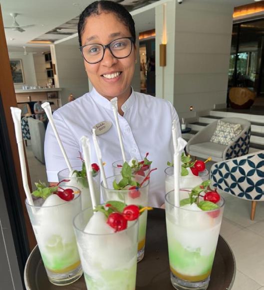 1. A vision in white and full of charisma, Maliyah Connolly— Entertainment Playmaker and Coordinator at Sandals Royal Bahamian — is ready to light up the stage and host the show!