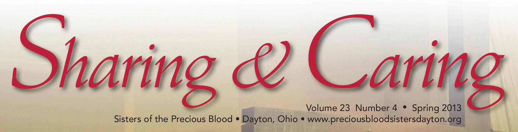 Established in 1989, Sharing & Caring is published quarterly by the Sisters of the Precious Blood, Dayton, Ohio, to communicate news of the Congregation and Precious Blood Spirituality, and to promote the Sisters’ mission. All editorial content and photographs in Sharing & Caring are copyrighted. For reprint permission, please contact the communications coordinator.