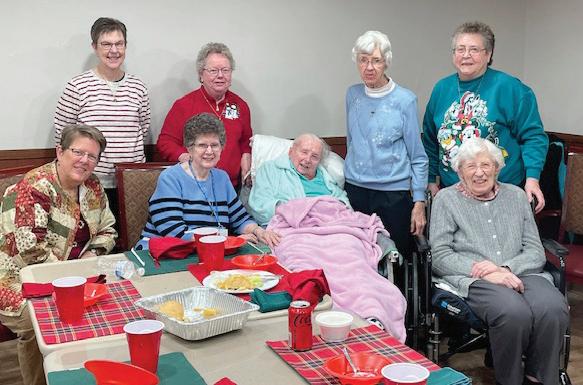 celebrate Mass in the Chapel. Council, along with Sisters Gerri McGeorge and Arlene Hirsch, visited with Sisters Alice Schoettelkotte and Nadine Kaschalk on Dec. 14 at Emma Hall. After sharing an afternoon meal, Sisters Nadine and Alice opened their Christmas gifts amidst a lot of humor. They said they didn’t realize they were so good all year!