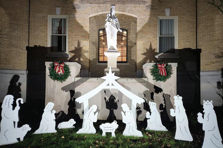 Clockwise, from top left, fireplace at Salem Heights; nativity scene on Salem Avenue; photos by Sheena McCormick. Sisters trimming the Christmas tree; Sister Eva Roehrich with the Christmas treats; contributed photos. Council visits Emma Hall residents, clockwise, from top left, Sisters Marla Gipson, Judy Kroeger, Gerri McGeorge, Ann Clark, Alice Schoettelkotte, Nadine Kaschalk, Arlene Hirsch and Terry Walter; Sister Joyce Lehman photo.
