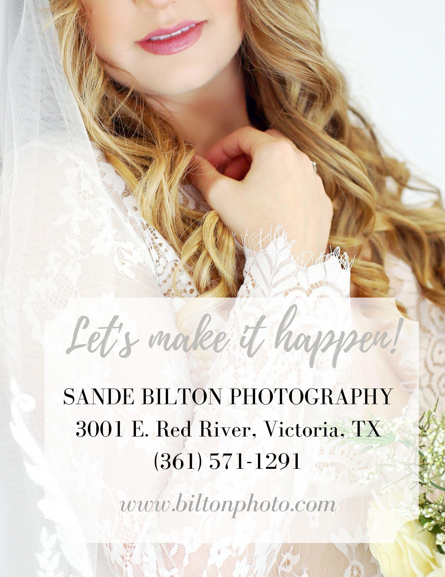 Hi! I'm Sande Bilton. I'm a full time photographer, blogger, boutique owner, social media manager, Avon rep, dreamer and coffee lover. I am passionate about providing an experience for my brides that makes her feel pampered, appreciated and most of all beautiful Nothing can make my heart feel as full as photographing a couple in love. I want to know their story how they met, how he proposed. I can imagine their children and grandchildren looking at their photos with smiling faces.