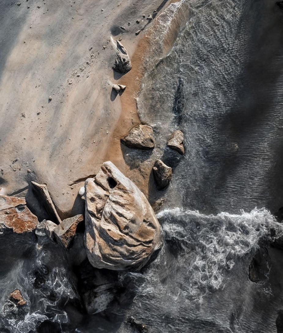 From the base of the mountain, it overlooks the meeting of sand and shore, bearing witness to the relationship between these elements.