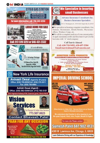 New York Life Insurance Avinash Desai (Agent for 30 years) Office: (630) 795-6956/Cell: (630) 370-3011 Fax: (630) 795-6964