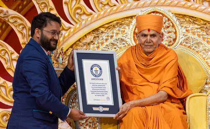 Guinness World Records officially recognized the event as the highest number of children simultaneously reciting Sanskrit verses, and a Certificate of Recognition was presented to Mahant Swami Maharaj during the celebration.