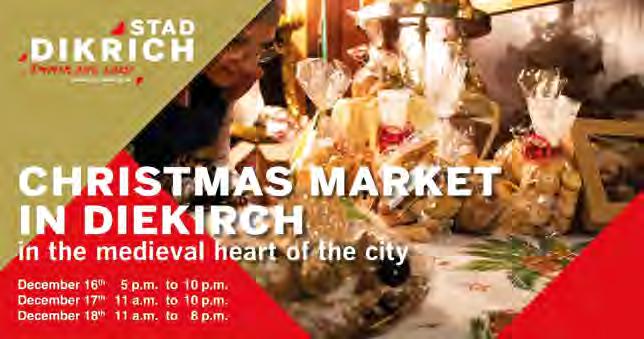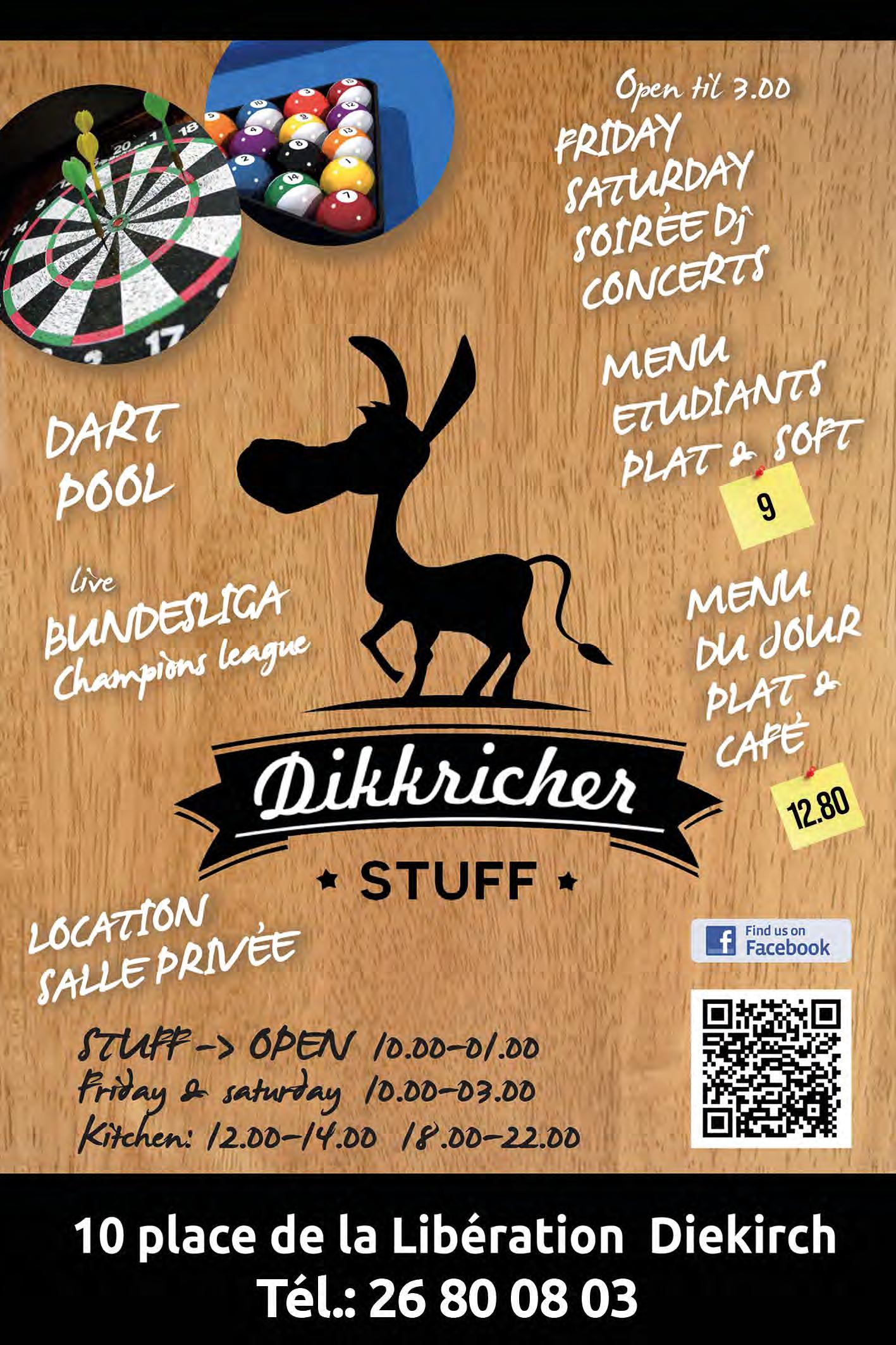 Natierlech ass Är Presenz och an all aner Bistro a Restaurant an Dikrich wëllkomm. De Programm mam Kannerfuesbal Samsdes an der Aler Seeërei, an der traditioneller Dikricher Cavalcade op Fuessonndes fannt dir hei an eiser Broschür.