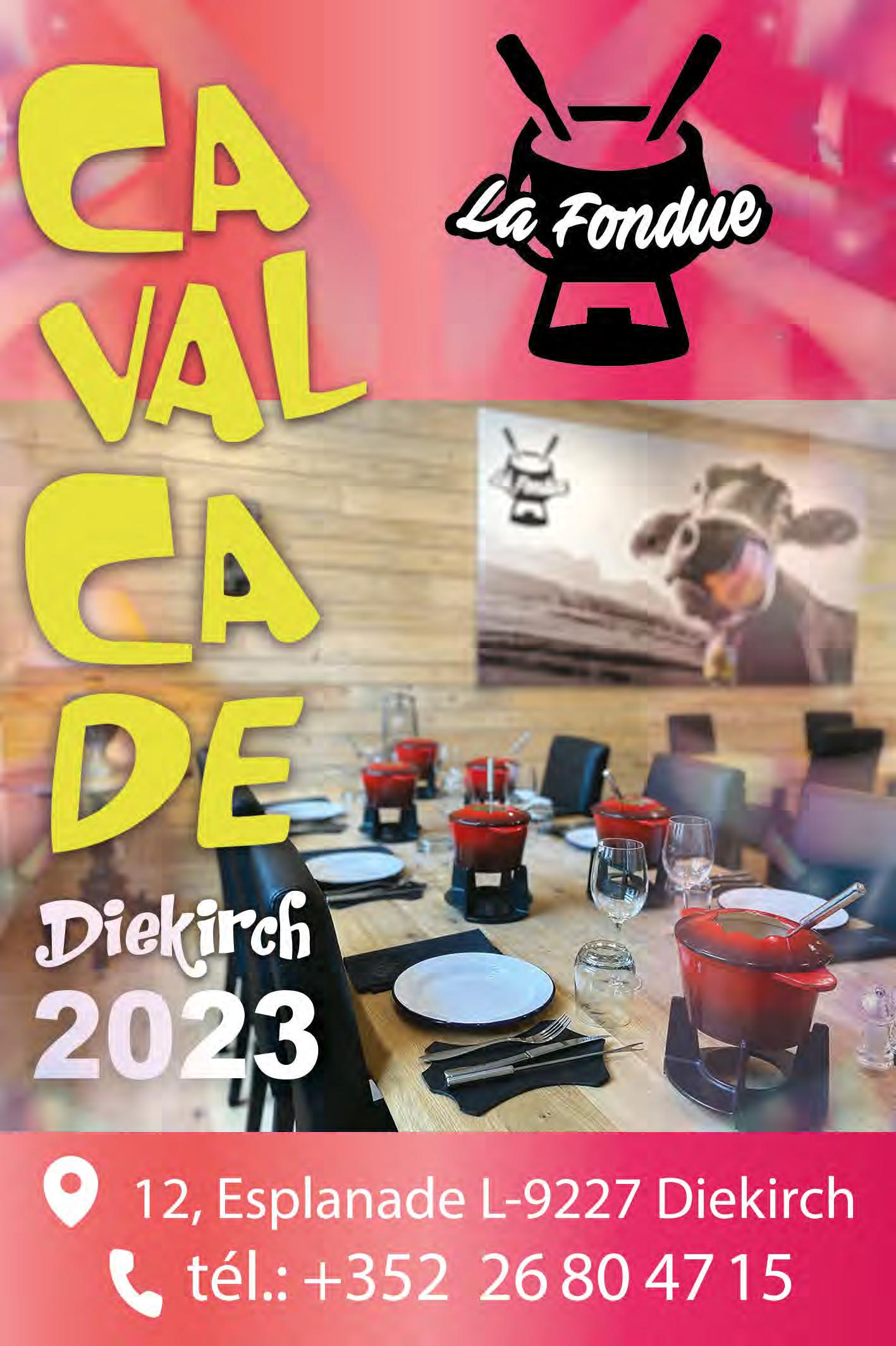 Am Numm vum Schäffen- a Gemengerot vun der Stad Dikrich wënschen ech Iech op alle Fall eng schéi Fuesent a vill Spaass op der 55. Kavalkad den 19. Februar 2023 hei zu Dikrich.