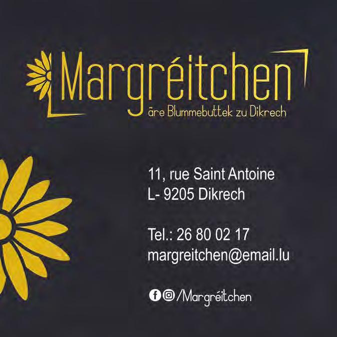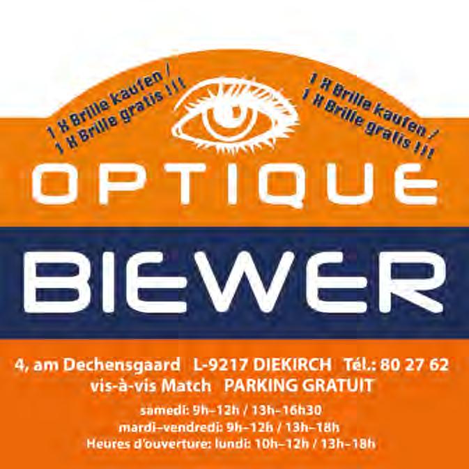 153 Ma-Je: 08:30 - 18:00 | Ve: 08:30 - 19:00 Sa: 08:00 - 16:30 5, rue Sainte Antoine • L-9205 DIEKIRCH T: 80 24 24