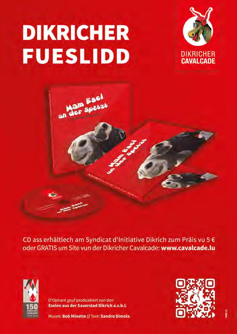 Et ass dëst Joer fir di 55. Kéier datt di “Dikricher Cavalcade” duerch d’Stroosse vun eiser Sauerstad zitt. Dës Schnapszuel passt natierlech exzellent. No der “Nët-Fuesent” virun zwee Joer, an d’letzt Joer der “Eng méi spéit Dikricher Cavalcade”, steet elo en Ëmzuch 2023 op engem hallef ronne Gebuertsdag duerch d’Eselsstad un. Esou di sanitär Kris mat dëser Pandemie Trilogie, hannert eis ze loossen, wier dach eng gutt Iddi.