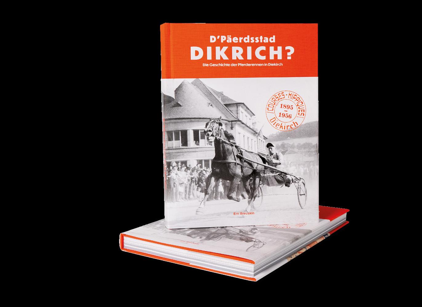 Die Stadt Diekirch ist für ihre Liebe für Esel bekannt. Doch nur wenige wissen, dass sie auch eine lange und interessante Geschichte in Bezug auf Pferde hat. In den Jahren 1895–1956 wurden hier zahlreiche Pferderennen abgehalten, darunter sogar Wettbewerbe, bei denen ausschließlich Ackerpferde gegen einander antraten. Das Buch von Ern Breuskin widmet sich der Geschichte des Pferdesports in Diekirch und hält sie, mit einer Vielzahl von Fotos, Berichten, Karten, Briefen und anderen Zeitzeugnissen fest. Es bietet einen wertvollen historischen Rückblick auf die Stadt und ist eine fesselnde Lektüre für alle Begeisterten des Pferdesports. Das Buch wurde von der Gemeinde Diekirch herausgegeben.