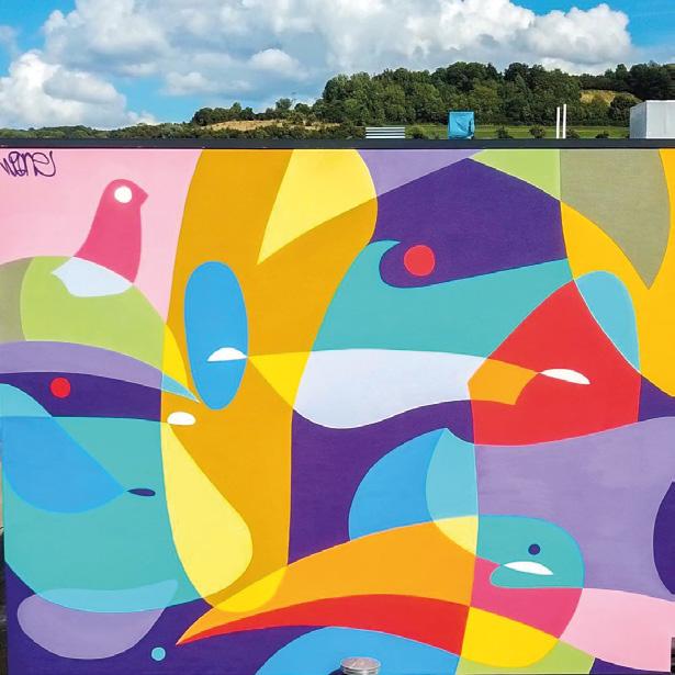 Rund 30 beauftragte Graffitis und „Murals“ zieren aktuell die Mauern und Wände von Ettelbrück. 2017 startete die Stadt Ettelbrück das Street Art Projekt in Zusammenarbeit mit dem Ettelbruck City Tourist Office. Künstler/innen aus dem In- und Ausland werden seither regelmäßig in die Nordstad-Gemeinde eingeladen, um hier ihren Spraydosen und Pinseln freien Lauf zu lassen. Vom 13. bis 17. Juli war der französische Urban Artist Wone aus Reims an der Reihe. Während fünf Tagen arbeitete er an der Fassade des Gebäudes des Projet Arcade und verwandelte einen Teil der Ettelbrücker Industriezone in eine große Leinwand. Bekannt für seinen Flat-Design ohne Schatten oder 3D-Effekte und seine neokubistischen Elemente, lässt Wone auch hier wieder abstrakt wirkende Formen über die Mauer tanzen, die im Ganzen betrachtet jedem/r Betrachter/in eine andere Lesart bieten.