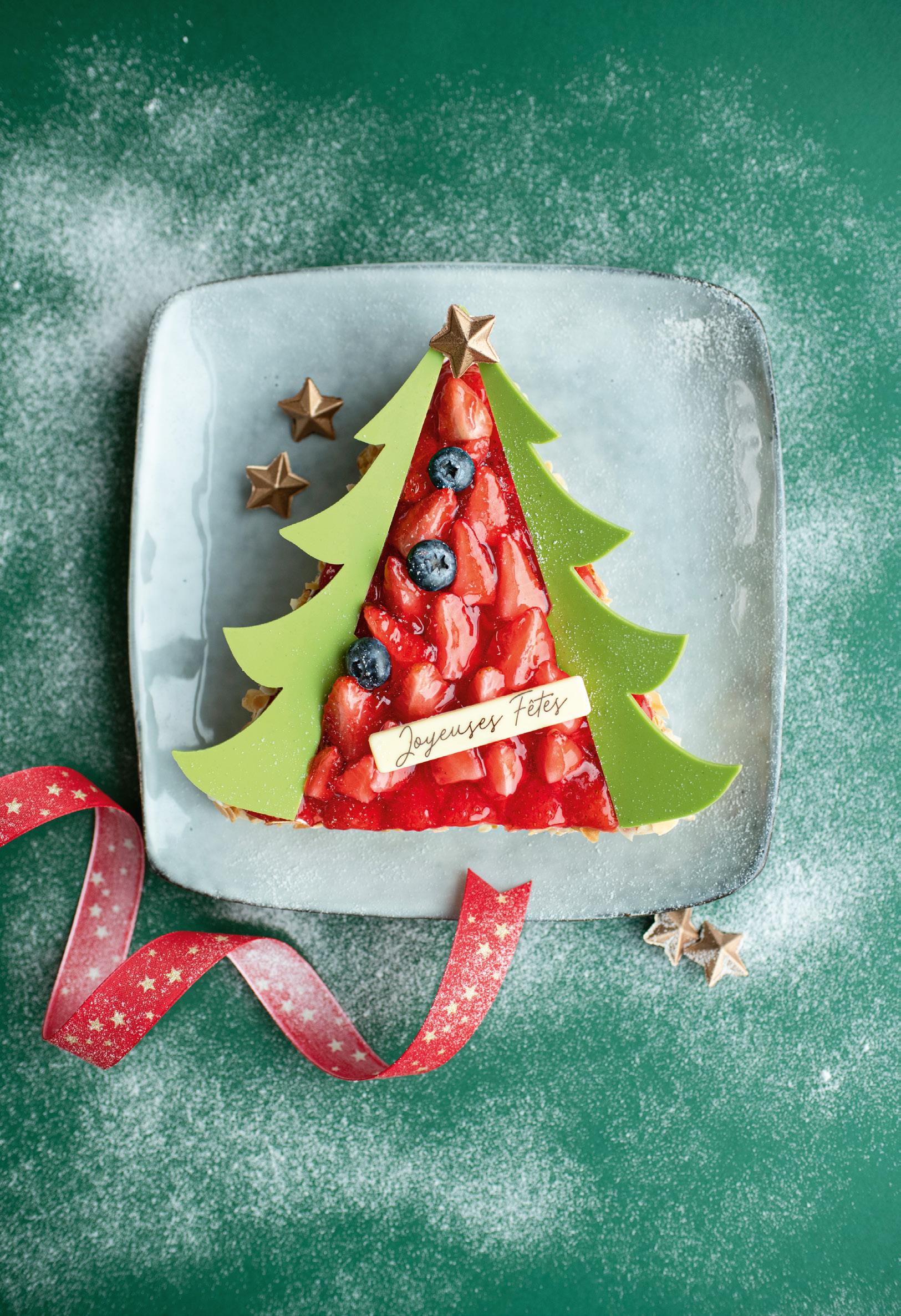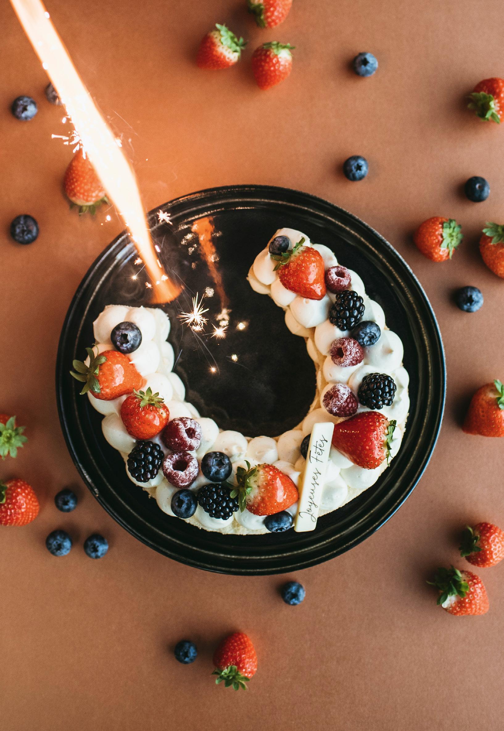Biscuit traditionnel, fourré de crème légère, décoré avec des fruits frais avec feu d’artifice