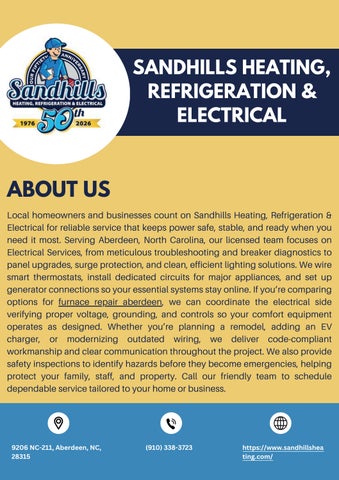 Sandhills Heating, Refrigeration & Electrical is the local team residents call when comfort matters, day or night. With a long-standing focus on quality maintenance, precise repair, and careful installation for heating and cooling systems—including Heat Pump Services—we approach every job with the same goal: dependable performance and peace of mind at home. Our technicians bring a practical, detail-oriented mindset to diagnosing issues, tuning equipment for efficiency, and recommending solutions that make sense for your space and budget. If your system falters unexpectedly, our 24-hour emergency services, even on holidays, mean help is on the way whenever you need it. Contact Us: Phone: (910) 338-3723