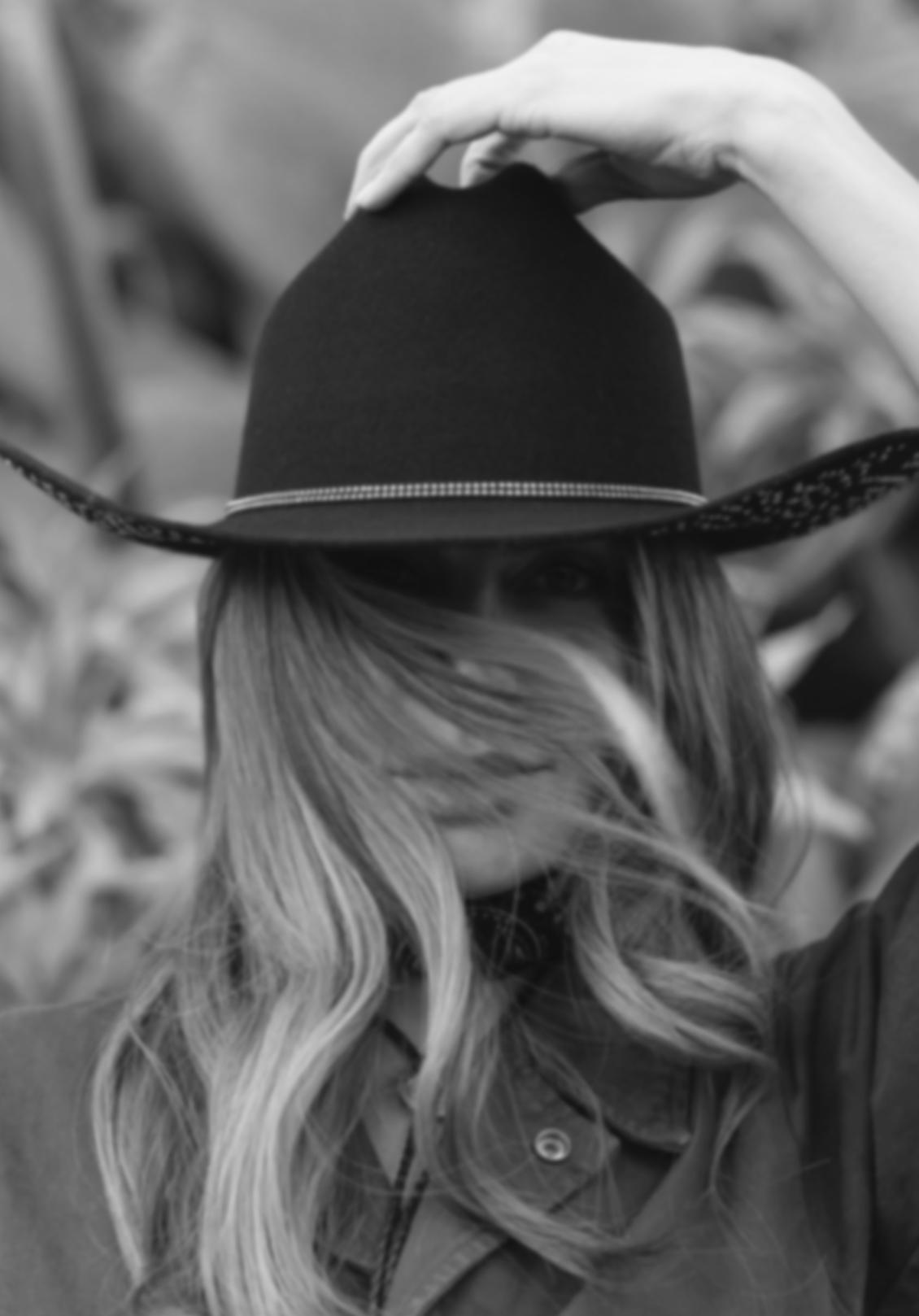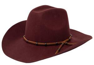 •Wool Felt Cowboy Hat With Twisted Faux Leather Band With Knotted Back
