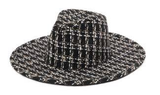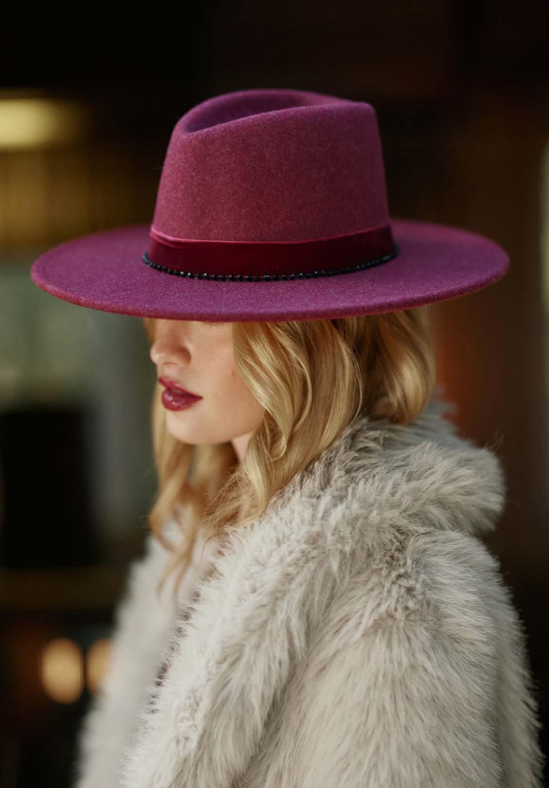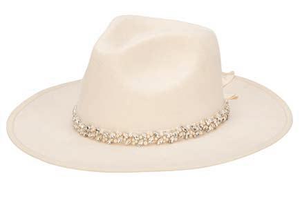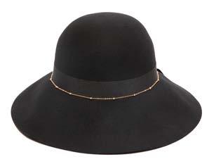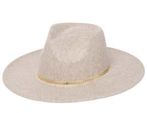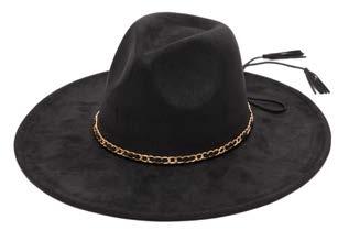 •Wool Felt Stiff Brim Fedora With Suede Band And Layered Gold Chain Trim
