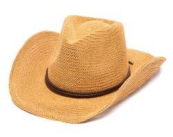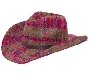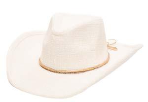 •Pinch Crown Machine Knit Cowboy With Wrapped Braided Faux Leather Cording, Knotted At Center Back With Metal Cord End Tassels