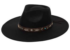 •Wool Felt Rancher Cowboy With Triple Braided Wrap Trim With Back Western Concho