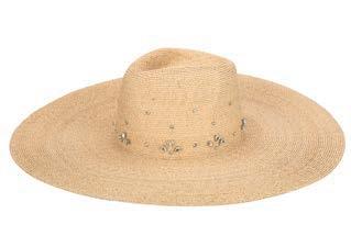 •Wool Felt Wide Brim Boater With Wrapped Cotton Layered Rope