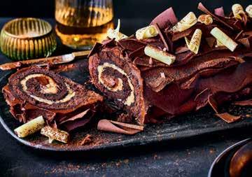 We have taken our extremely chocolatey sponge roll, covered it in thick milk chocolate and decorated it with chocolate crackers and a popping candy 'POP' – a real slice of fun.