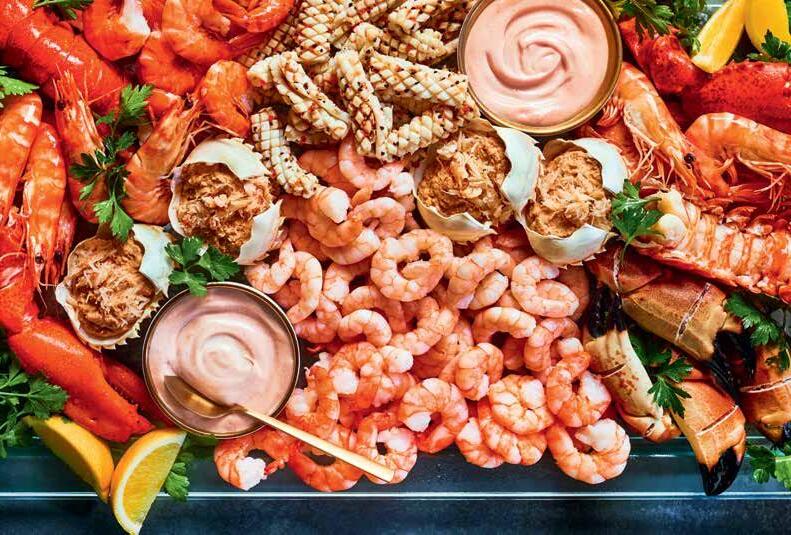 This luxurious platter is a wowworthy feast of lobster and crab claws, dressed mini Atlantic crabs, calamari, Madagascan crevettes, black tiger and Honduran king prawns and two juicy Atlantic lobster tails. It’s finished with Marie Rose sauce, fresh lemon and parsley.
