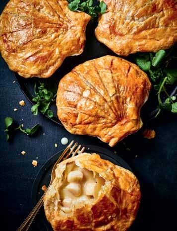This sensational set of four en cro tes features sweet and delicate Patagonian scallops in a creamy Champagne sauce, topped with golden and flaky all-butter puff pastry. So moreish, you’ll be scraping the shells clean.