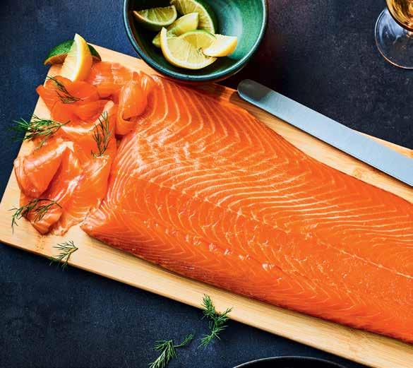 "OUR CALEDONIAN GOLD™ SALMON IS RESPONSIBLY SOURCED FROM THE CRYSTAL CLEAR WATERS OFF SCOTLAND’S WEST COAST, ORKNEY AND SHETLAND, GIVING IT THE FRESHEST FLAVOUR AND THE SOFTEST FLAKES. YOU’LL FIND IT IN OUR SMOKED SALMON STARTERS."